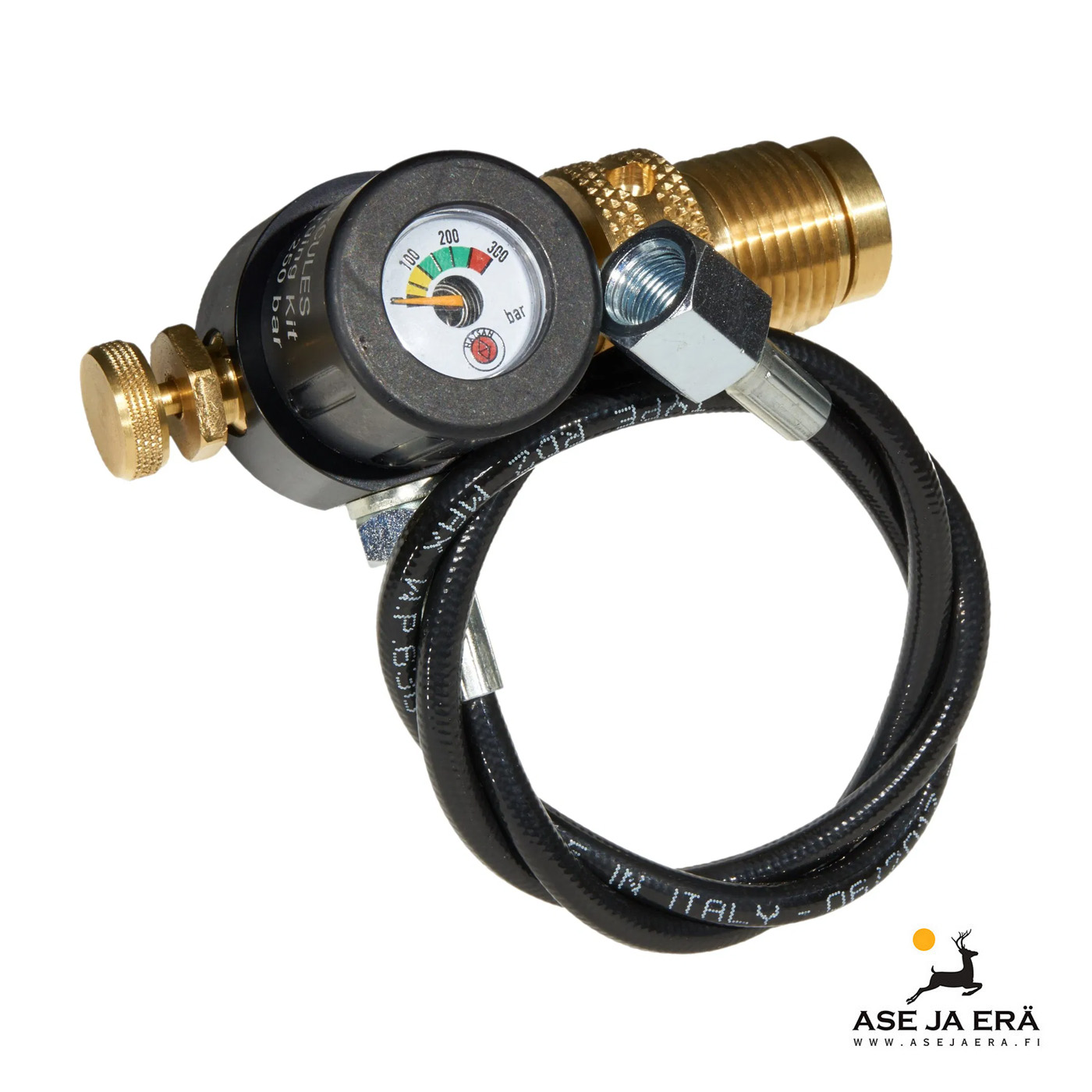 Liitäntäsarja asennetaan suoraan erikseen hankittavaan 200 bar paineilmasäiliöön. Liitäntäsarjan mukana tulee painemittari, suodatin, letku ja kytkin.