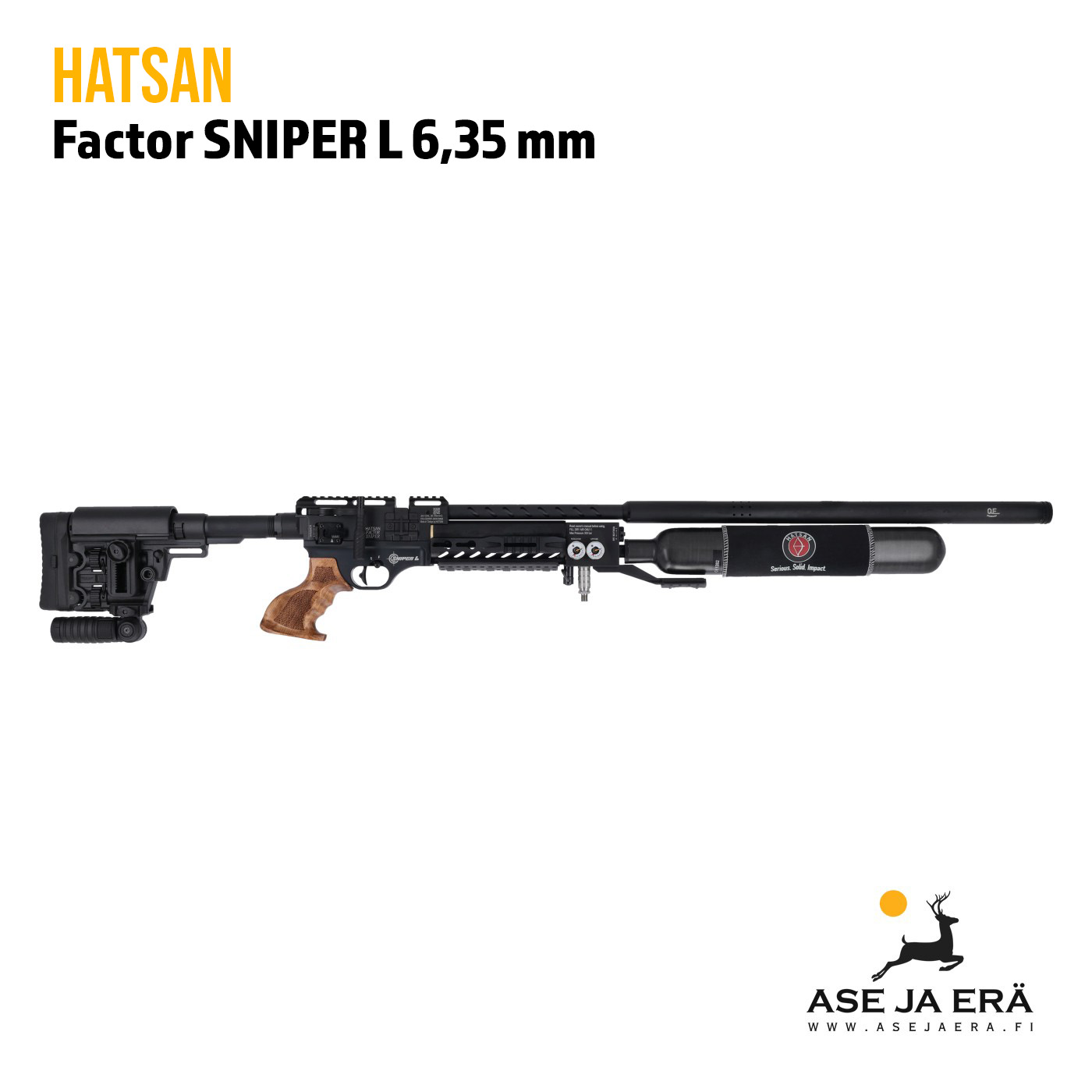 Hatsan Factor Sniper L 6,35 mm PCP Ilmakivääri tarjoaa huippuluokan suorituskyvyn ja monipuolisen säädettävyyden, mikä tekee siitä erinomaisen valinnan niin harrastajille kuin ammattilaisillekin.