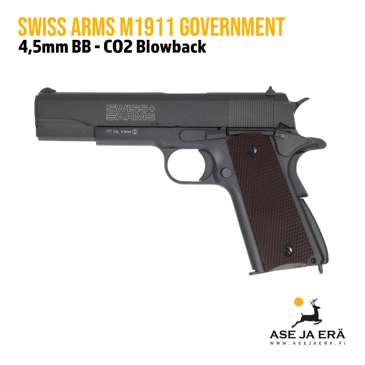 Swiss Arms M1911 Government on hyvä valinta kun haetaan laadukasta replika ilmapistoolia tarkkuusammuntaan ja harjoittelukäyttöön.