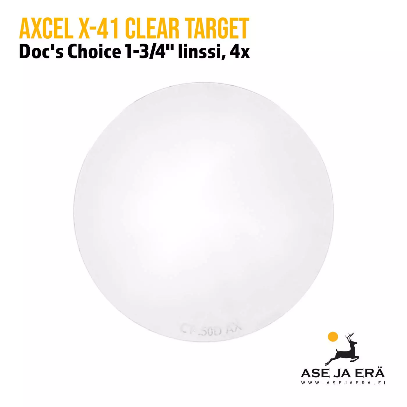 Axcel X-41 Clear Target Doc's Choice 1-3/4” -linssi on kehitetty erityisesti kilpajousiampujille, jotka kaipaavat parasta mahdollista näkyvyyttä ja toimivuutta tähtäämiseensä. Linssin valmistuksessa on hyödynnetty Essilorin edistynyttä optiikkaa ja Crizal 9-Step -pinnoitetta, jotka yhdessä minimoivat heijastukset, estävät vääristymät ja tarjoavat selvästi kirkkaamman näkymän. Linssin laaja, 44 mm halkaisija tekee tähtäämisestä luonnollista myös vaativissa tilanteissa, ja optisesti keskitetty rakenne helpottaa ammunta- ja kisatilanteissa nopeaa tarkennusta. Kestävä materiaali takaa särkymättömyyden ja pitkäikäisyyden, joten linssi toimii moitteettomasti vuodesta toiseen.