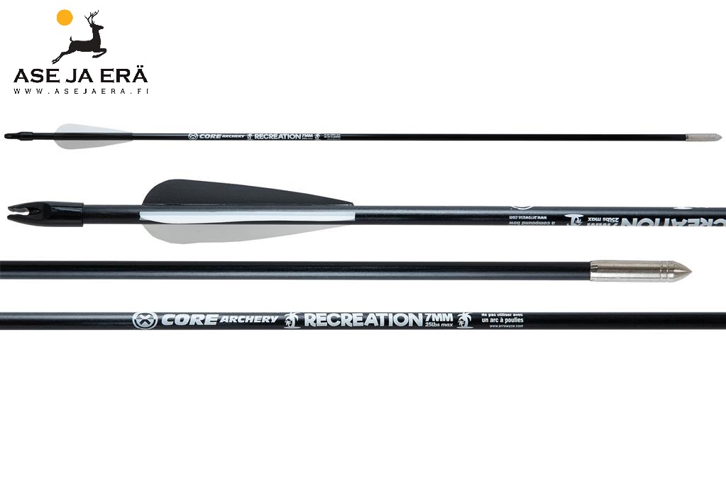 Tämä ampumisvalmis nuoli on valmistettu korkealaatuisesta lasikuidusta ja siinä on mukana nokki ja kärki. Core Recreation -nuolta käyttääkseen saa jousen vetovastus olla maksimissaan 25 paunaa.