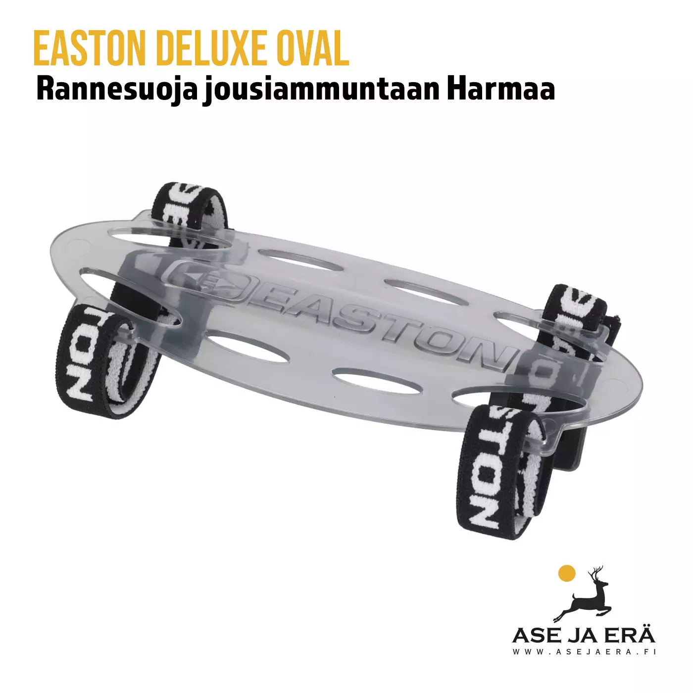Easton Deluxe Oval rannesuoja jousiammuntaan. Kompakti ja urheilullinen rannesuoja suojaa rannetta jänteen osumalta ja minimoi kontaktin aiheuttamat vaikutukset ammuttun nuolen lentorataan.