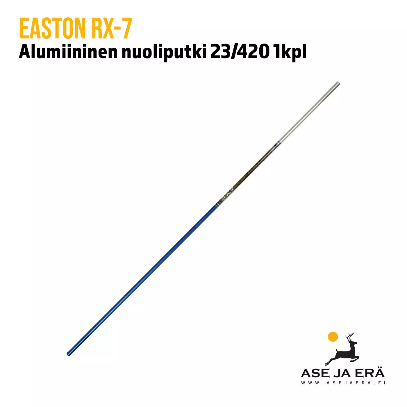 Easton RX-7 alumiininen nuoliputki vastajaarijouselle. RX-7 soveltuu jousiampujille, jotka etsivät siististi ampuvaa isomman halkaisijan nuoliputkea. 23/420 spinen nuoliputkessa ulkohalkaisija on WA maksimi, eli 9,3mm.