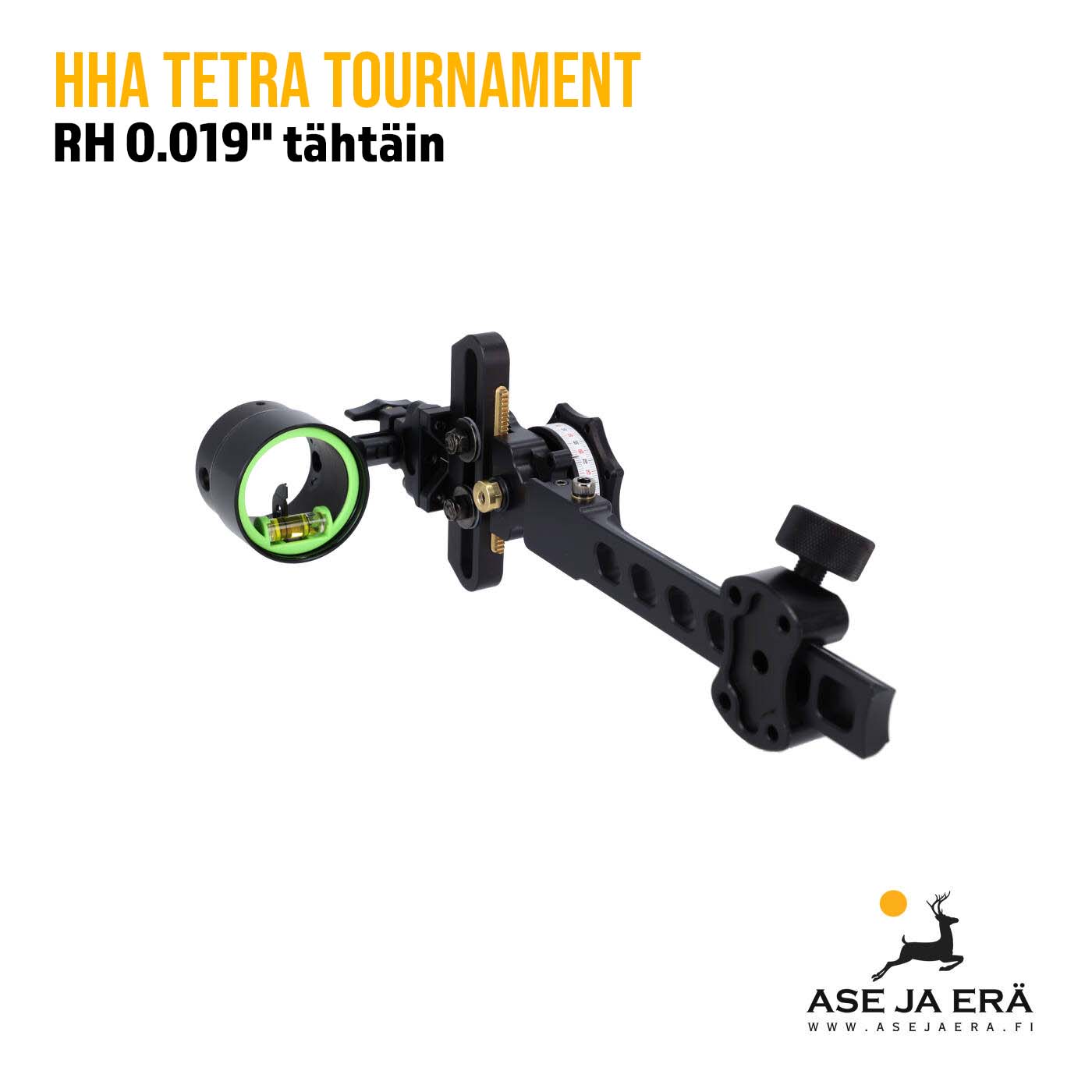 HHA Tetra Tournament on luotettava ja laadukas slider-tähtäin jousimetsästykseen ja 3D-ammuntaan. Tetran pehmeästi toimiva 2.1” korkeussäätö tarjoaa runsaasti liikkumatilaa ja yhdessä R.D.S. tähtäinteippien kanssa saadaan käyttöön 20-100 yaardin ampumaetäisyydet.