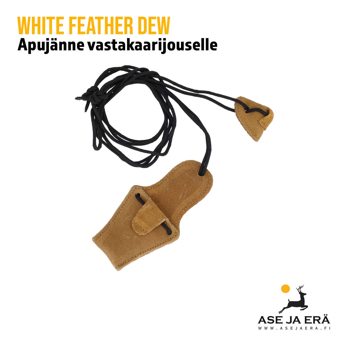 White Feather Dew apujänteen kiinnitysosat on valmistettu korkealaatuisesta nahasta, mikä tekee siitä uskomattoman kestävän ja pitkäikäisen. Nahka estää myös jousesi lapojen vahingoittumisen, joten sinun ei tarvitse pelätä että apujänne naarmuttaisi lapojen päitä. Vahva naru on luotettava ja kestävä.