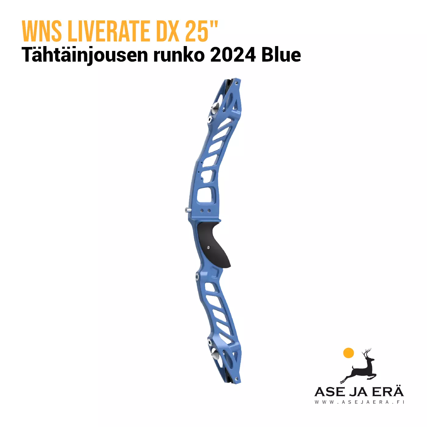 WNS Liverate DX vastakaarijousen runko on kauden 2024 uutuusmalli, joka on suunniteltu huippusuorituskykyä etsivälle jousiampujalle. Liverate tähtäinjousen keskiosa on valmistettu alumiinista ja se painaa ainoastaan 1120g.