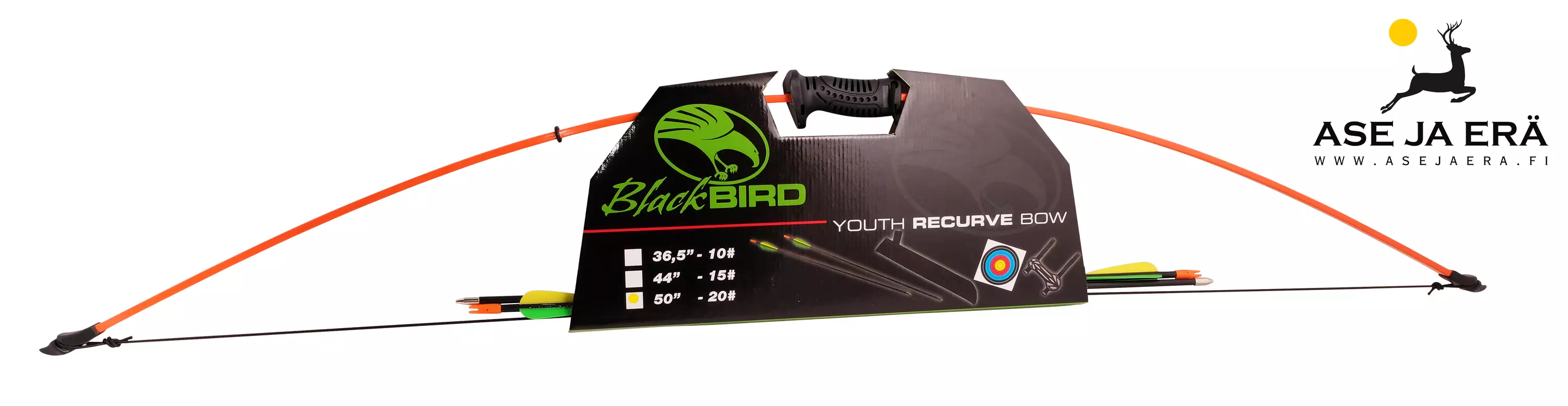 Blackbird Fiber Bow on nuorille suunnattu jousipaketti, jolla nuori harrastaja pääsee alkuun. 127 cm rungolla varustetussa perinnejousessa on 20 paunaa.
