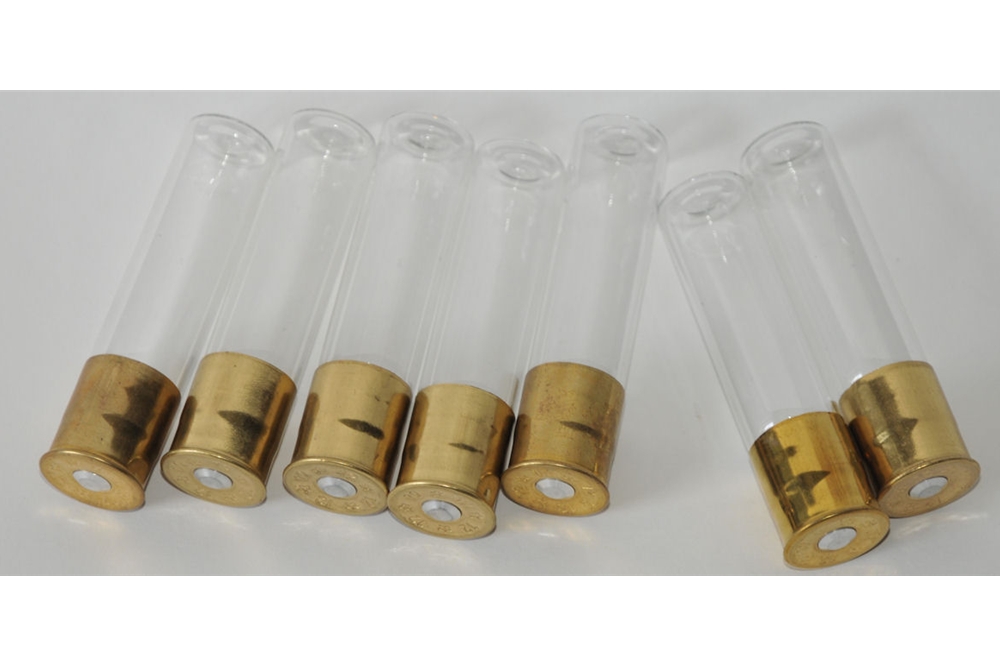 Haulikonpatruunan mallinen jahtipaukku shottilasi.