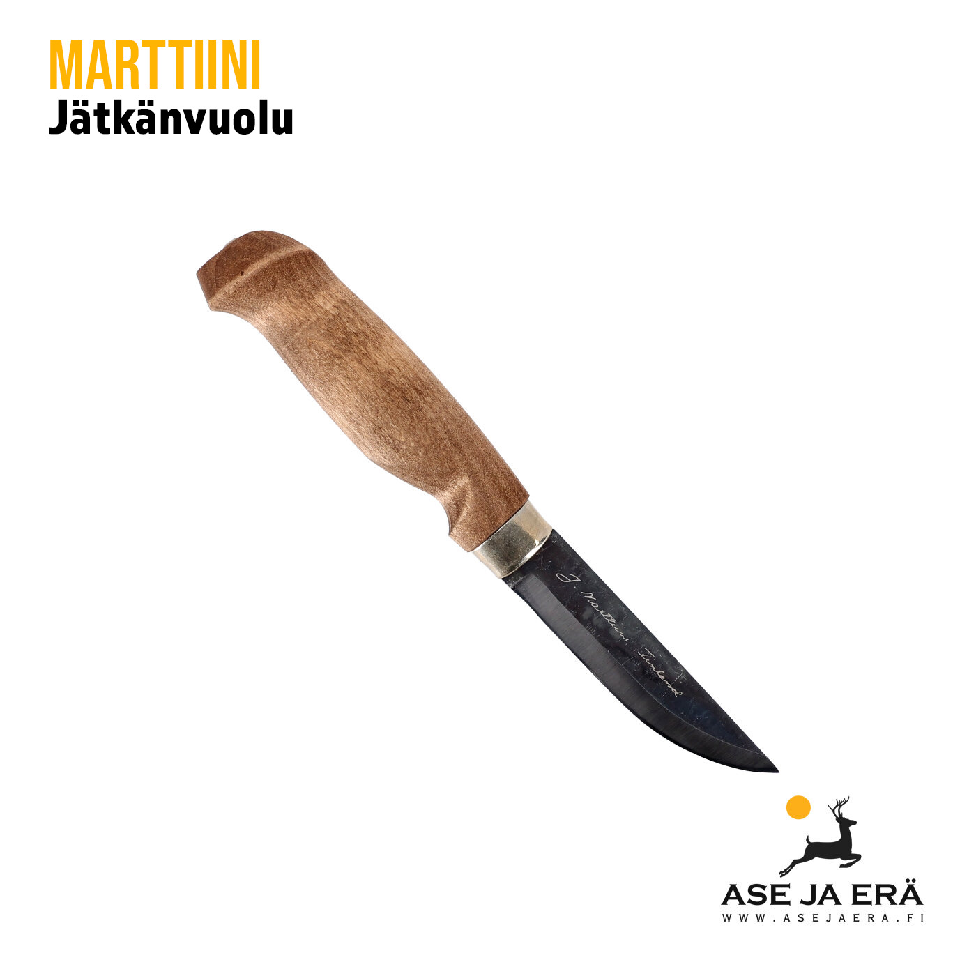 Puukko löytyy myös pienempänä versiona (ks. tuote 121016 Pikkujätkä) sekä helppohoitoisella ruostumattomalla kromiterästerällä (ks. tuote 127015 Kromijätkä)