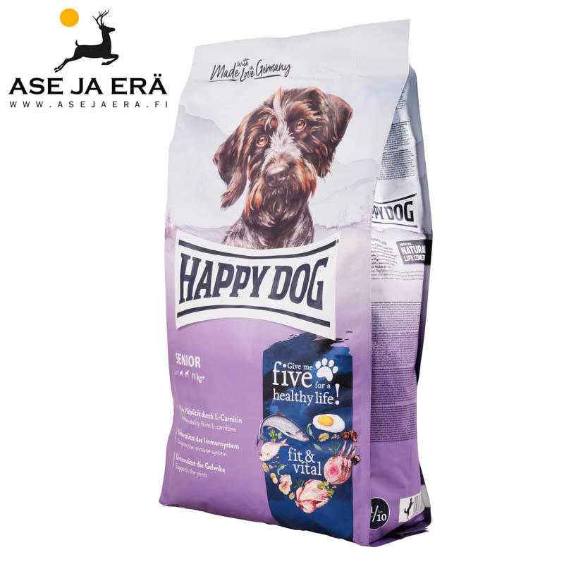 Happy Dog Fit & Vital Serior -kuivaruoka valmistetaan siipikarjan, lampaan, kalan, riisin ja maissin pohjalta ja sitä rikastetaan erityisillä, ruoansulatusta edistävillä kuiduilla, vankalla C-vitamiinilla sekä alkuperäisillä uusseelantilaisilla simpukoilla ja L-karnitiinilla.