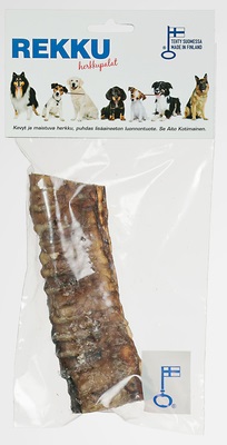 Rekku Härän Kurkkutorvi on kotimainen, lisäaineeton ja erittäin maistuva herkku koirallesi.