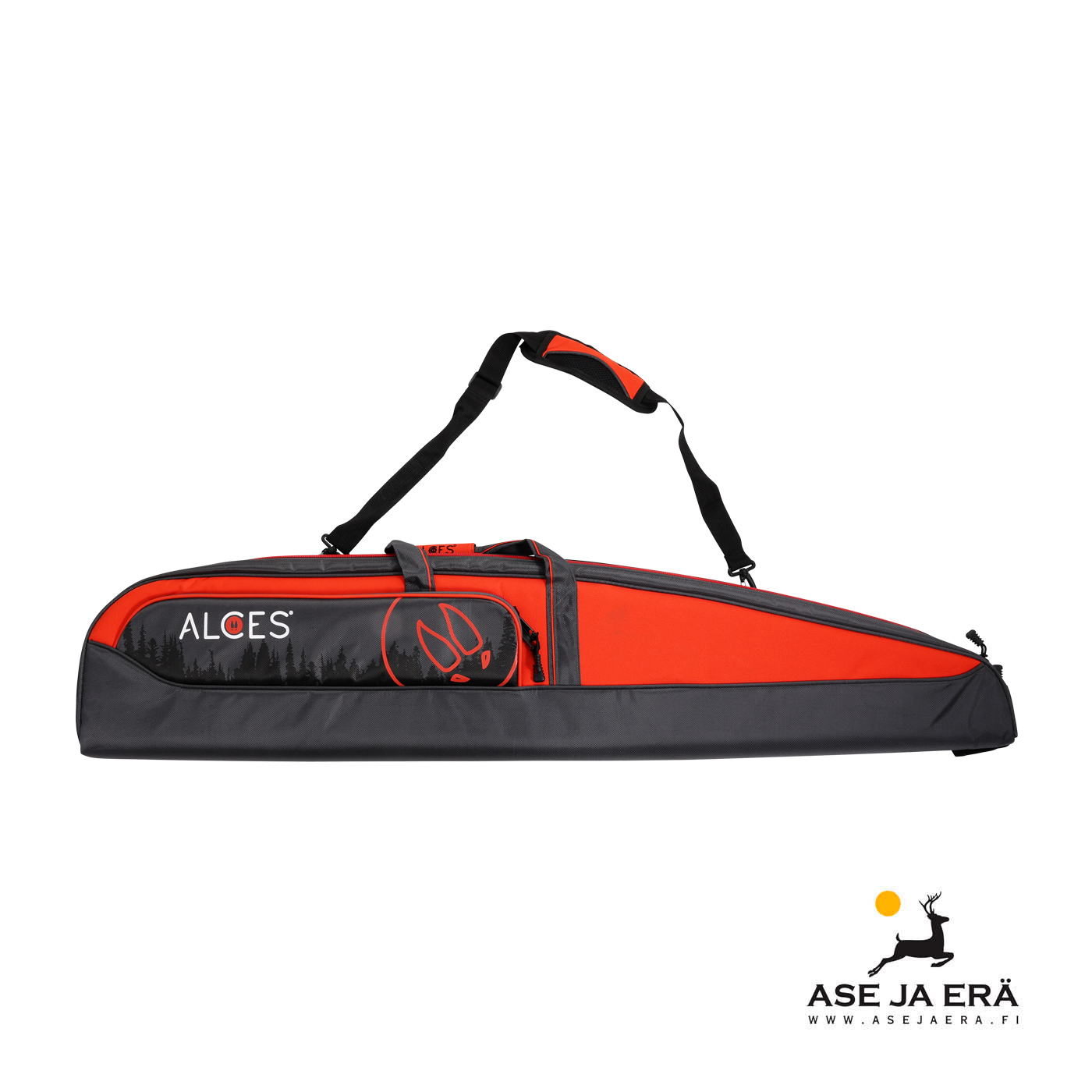 Pehmustetussa Alces Caribou asepussissa on säädettävä ja irroittettava olkahihna sekä tilava sivutasku. Alces Caribou asepussi on kestävä ja hyvin pehmustettu. Asepussin vetoketju on varustettu kahdella vetimellä ja näin tarpeen tullen lukittavissa esim. riippulukolla. Pussin kärjessä on tukeva ripustuslenkki, josta pussia voidaan säilyttää pystyasennossa. Laadukkaassa asepussissa on olkahihnan lisäksi kantokahvat.