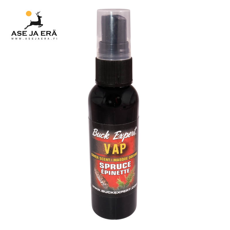 Buck Expert Cover Scent -hajuste Buck Expert Cover Scent-hajusteet peittävät ja häivyttävät ihmisen luontaisen hajun, jotta riista ei saa vainua metsästäjästä. Hajustetta suihkutetaan pieni määrä metsästäjän vaatteisiin ja varusteisiin. Saatavilla: kuusen ja männyn tuoksu
