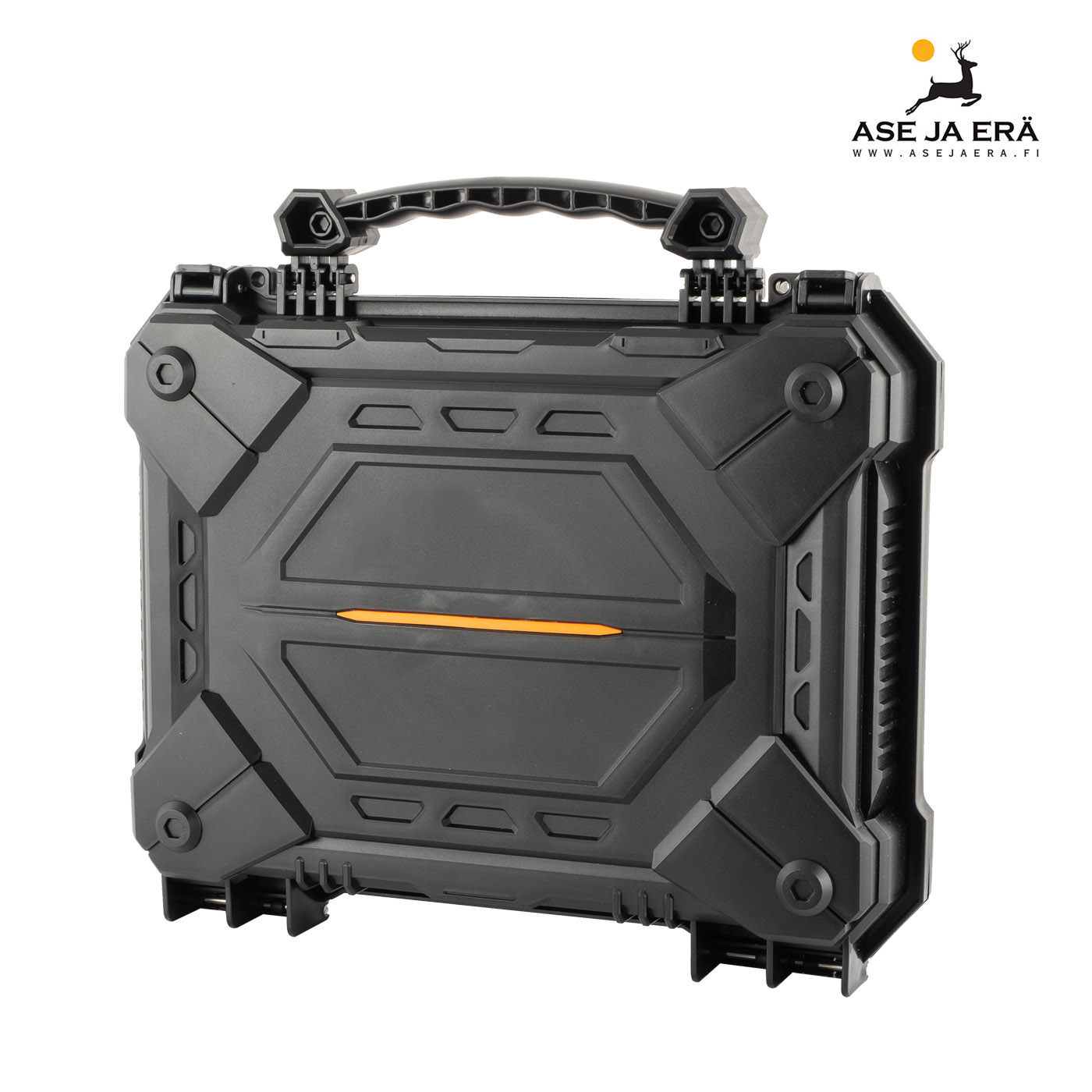 Laukussa voidaan turvallisesti säilyttää ja kuljettaa esimerkiksi pistoolia, toimintakameraa, kuvauskopteria, optiikkaa yms. Sisällön suojaksi laukussa on kaksikerroksiset pehmusteet, jotka pitävät kuljetettavan tavaran tukevasti paikoillaan. Alapehmuste on esileikattu neliöiksi, joita irrottamalla sisäosa voidaan muokata haluttuun muotoon. Laukusta löytyy paikat riippulukoille, joten laukku on mahdollista lukita.