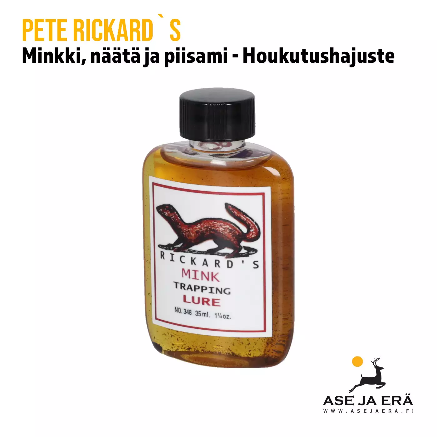 Minkki, näätä ja piisami houkutushajuste Pete Rickard`s on yksi Pohjois-Amerikan suosituimmista houkutushajusteista minkin, näädän ja piisamin tehokkaaseen pyyntiin.