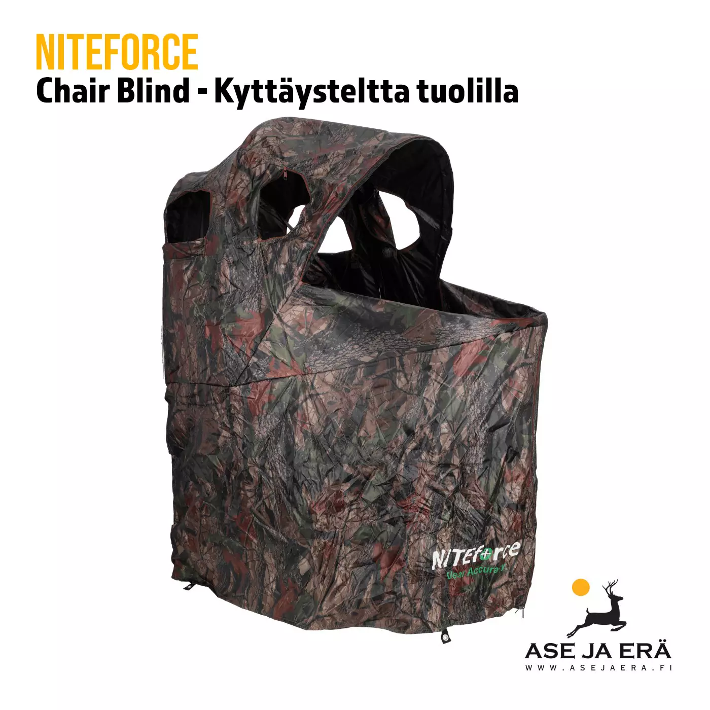 Niteforce Chair Blind Kyttäysteltta tuolilla tarjoaa yksinkertaisen ja tehokkaan ratkaisun tilanteisiin, joissa tarvitaan sekä mukavaa istumapaikkaa että tehokasta näkösuojaa.