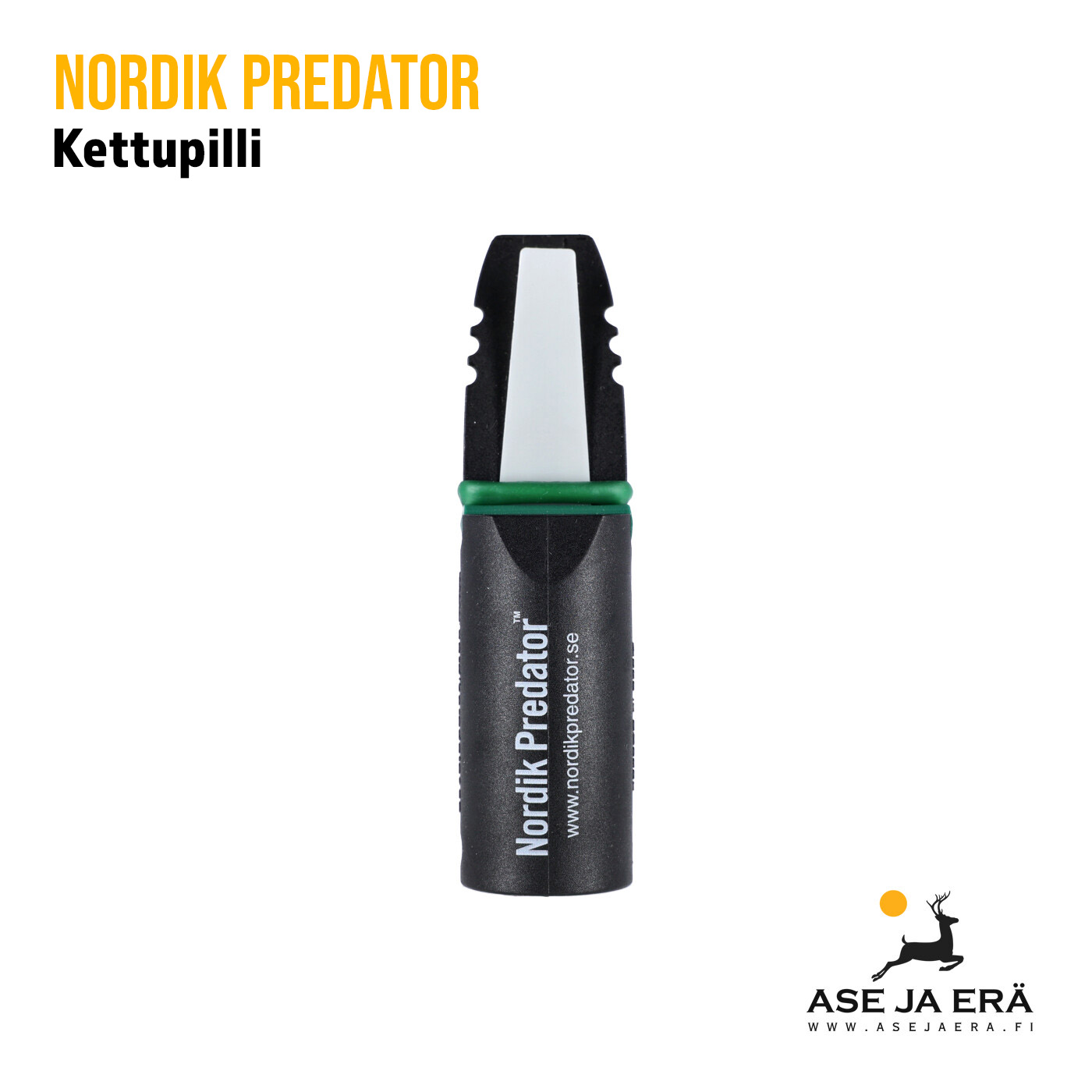 Nordik Predator -houkutuspillillä voi jäljitellä mm. hiiren ja myyrän piipitystä, kanin tai jäniksen hätähuutoa, ja sorkkaeläinten hätähuutoa.