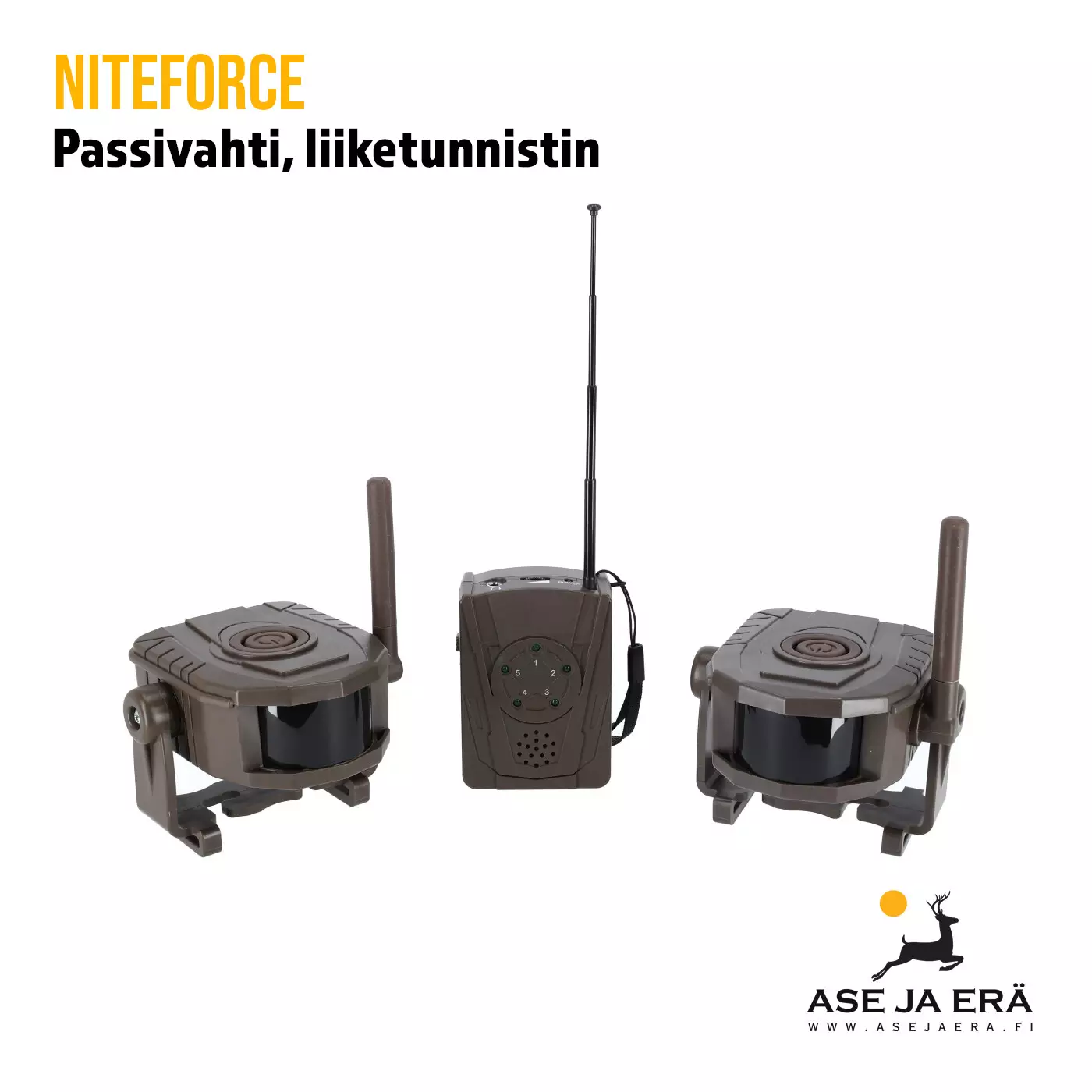 Passivahti NITEforce 2 liiketunnistinta on varustettu jopa 300 metriä kantavalla yhteydellä tunnistimien ja vastaanottimen välillä ja laite on kätevä apuväline kyttäysmetsästykseen.