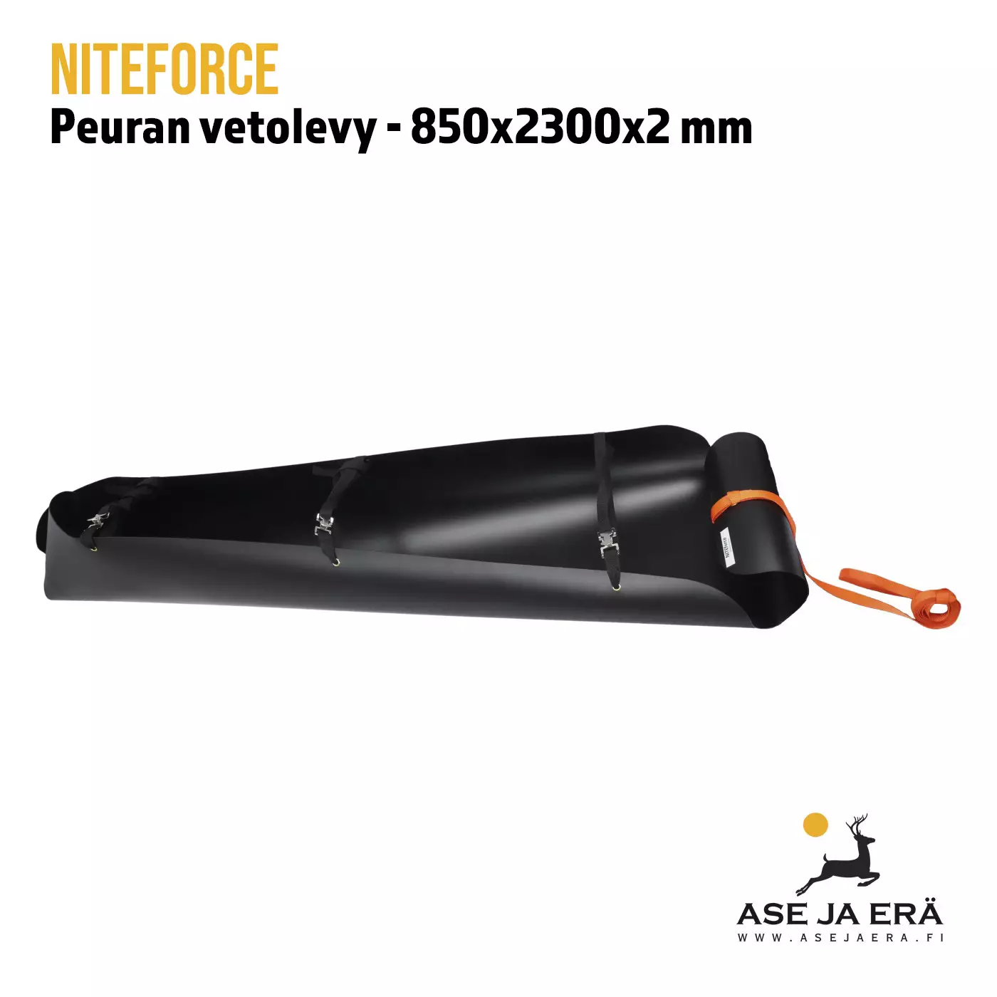 Peuran vetolevy 220 cm x 80 cm Niteforce Game Sled on erityisesti riistan kuljettamiseen suunniteltu kevyt, kestävä ja hyvin liukuva pulkka. Se helpottaa olennaisesti esimerkiksi peuran, villisian tai muun vastaavan kokoisen saaliin siirtämistä metsästä ajoneuvolle tai käsittelypaikalle. Vetolevyn HDPE-rakenne takaa erinomaisen liu’un ja vähäisen kitkan, mikä vähentää fyysistä kuormitusta erityisesti hankalakulkuisessa maastossa.