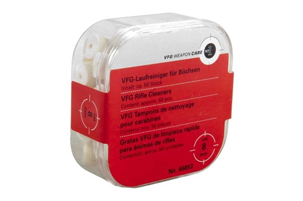 VFG:n puhdistustulpat on valmistettu puhtaasta villahuovasta ja niillä aseen piipun puhdistaminen käy nopeasti ja helposti.