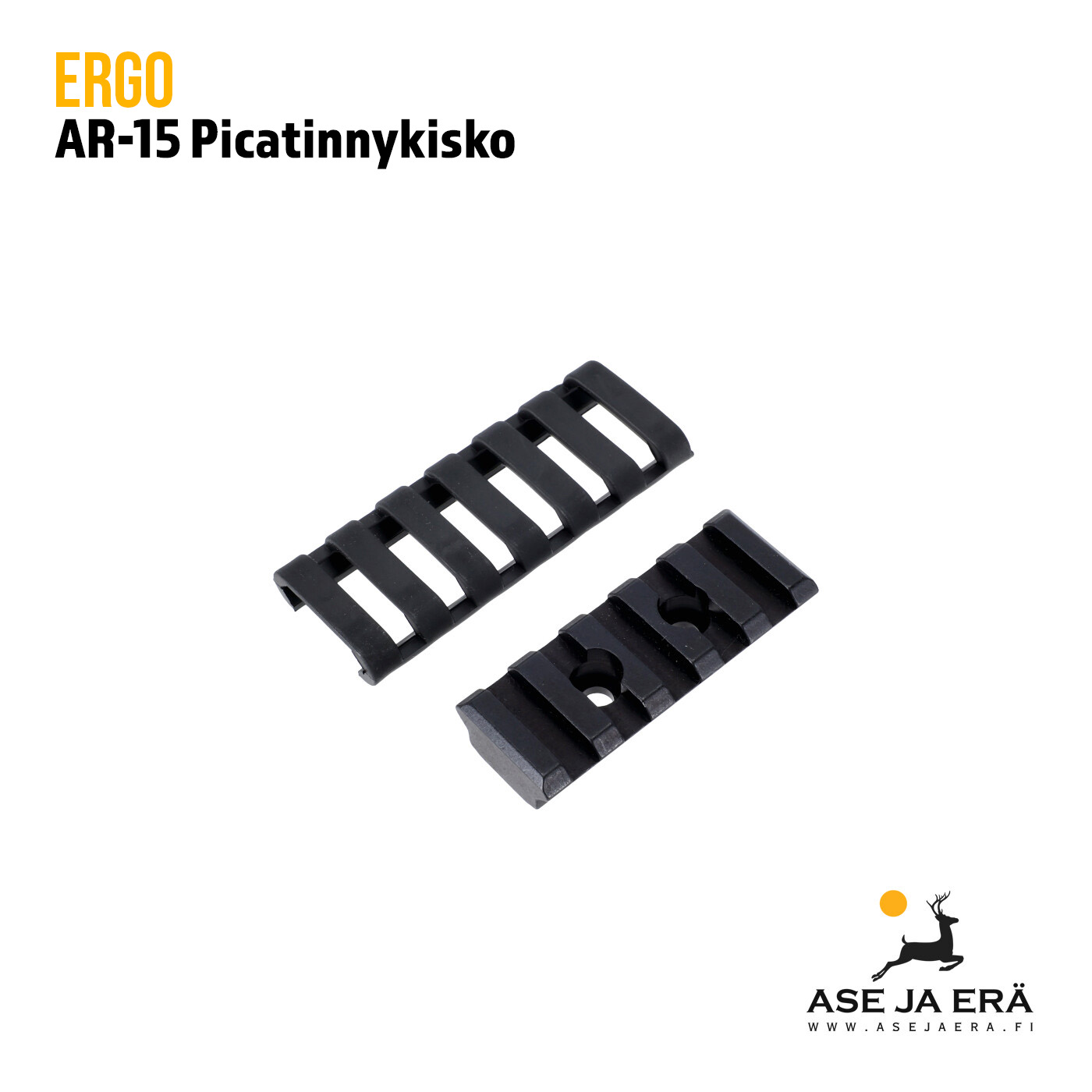 AR-15 ERGO PICATINNY DIRECT on kevyt alumiinista valmistettu kiinnityskisko AR-15-kiväärin kädensuojiin tarjoten nopean ja tukevan kiinnityksen valoille, etukahvoille, bipodeille ja jalustoille.