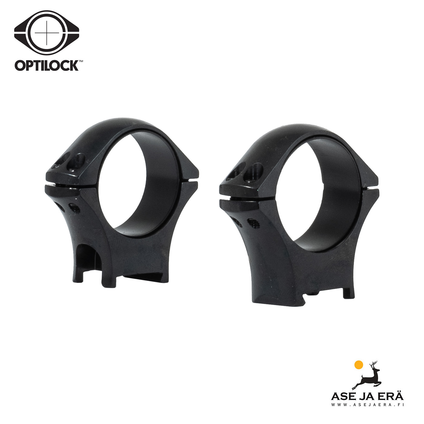 Sinistetty, tukeva yksiosainen Optilock LOW rengasjalka Tikka aseisiin 17 mm suoralle kiskolle.