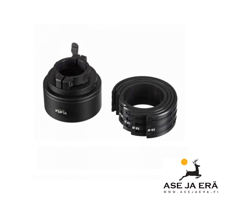PSP-adapterin asentaminen päiväoptiikan runkoon on helppoa ja nopeaa eikä vaadi mitään erityistyökaluja. Kierreliitos takaa lämpölisäosan ja PSP-adapterin lujan, raottoman liittämisen toisiinsa. Adapteria asennettaessa käytetään mukana tulleita muovisia sovitusrenkaita, joilla varmistetaan turvallinen ja pitävä asennus. Sovitusrenkaan koko valitaan päiväoptiikan rungon ulkomittojen mukaan.