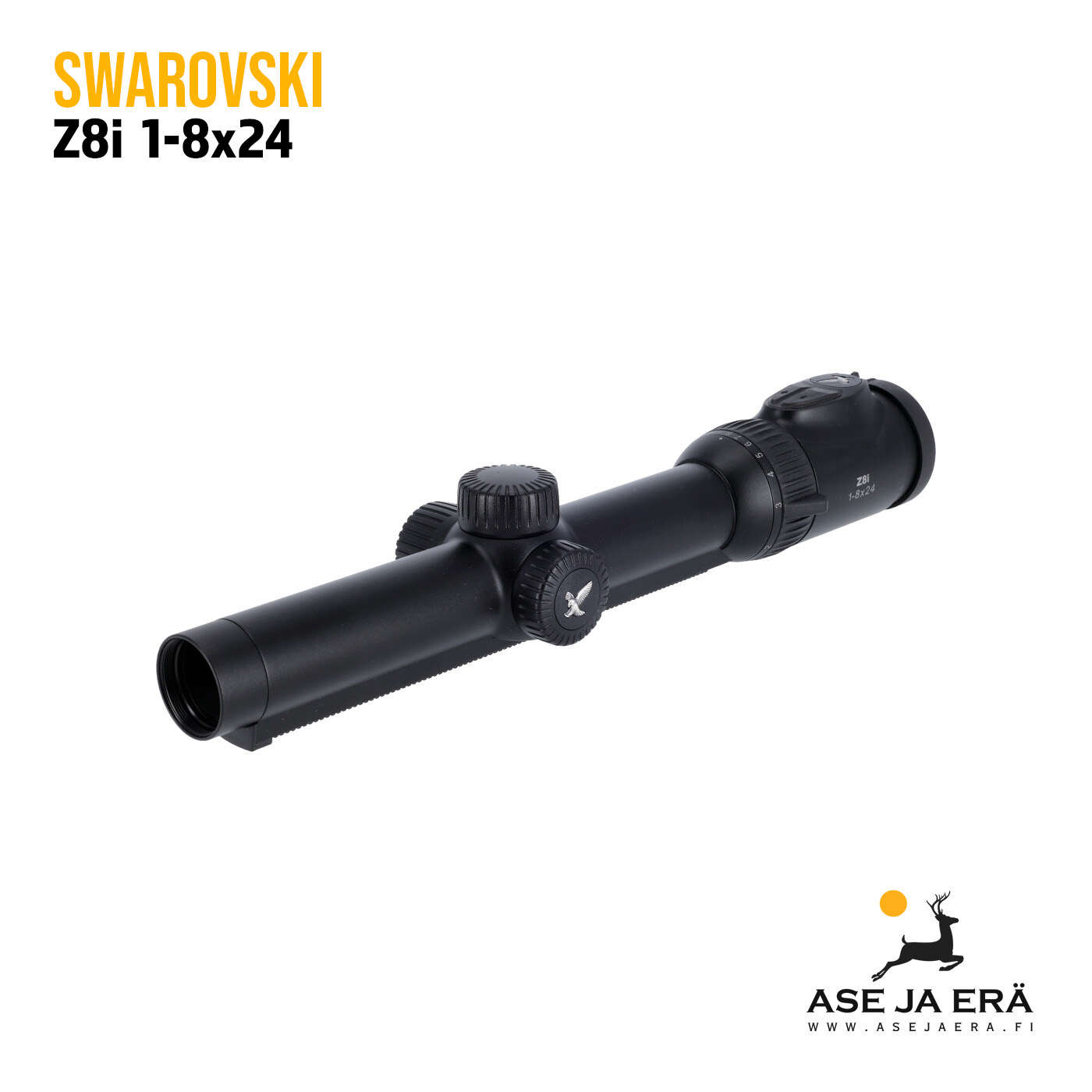 Swarovski Z8i 1-8x24 on selkeälinjainen ja siro, 30mm runkoputkinen ja kompaktisti muotoiltu kiikaritähtäin. Ristikossa on valaistupiste, jossa on säädettävä valopisteen kirkkaus. Kirkkauden säätöalue on laaja, siitä löytyy päivä- kuin yöasennot, joita voit säätää portaattomasti vallitsevan valonmäärän mukaisesti. Swarovski Z8i -tähtäimet on varustettu älykkäällä kallistusanturilla, joka ilmoittaa kun käännät aseen kyljelleen (30 -astetta) tai nostat sen pystyyn tai lasket piipun alaspäin (70 -astetta). Tällöin valopiste sammuu automaattisesti ja säästät paristoa, tai jos et ole sääätänyt kirkkautta kolmeen tuntiin. Se ei voi jäädä vahingossa päälle.