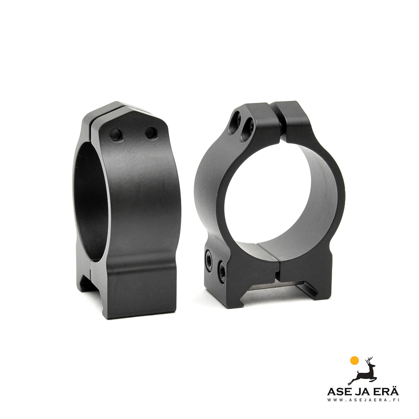 Kiinteät teräksiset matalat Warne Maxima -kiikarinjalat 20 mm picatinny/weaver-kiskoon.