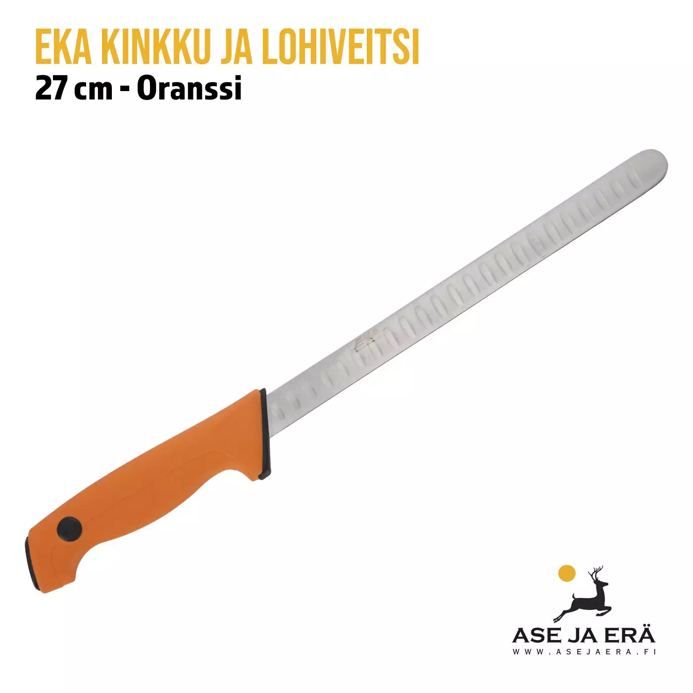 EKA kinkku- ja lohiveitsi 27 cm on suunniteltu ammattitason fileointiin niin kotiin kuin kalastajille ja metsästäjille. Terän extra pitkä muotoilu mahdollistaa pidemmät ja tarkemmat leikkaukset, mikä on erityisen tärkeää isompien kalojen käsittelyssä. Urat terän sivuilla estävät viipaleiden tarttumisen, mikä parantaa lopputulosta ja helpottaa kalojen ja lihan valmistelua, kuten sashimin tekoa.