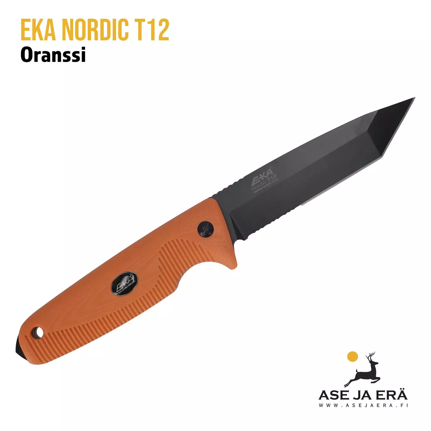 EKA Nordic T12 Puukko on suunniteltu selviytymiseen ja vaativiin tilanteisiin, kuten turva-, sotilas- ja pelastustehtäviin. Tätä puukkoa kuvaa tanterävainen, mustaksi päällystetty terä, jonka paksuus on 4 mm. Kokonaispituus on riittävä raskaaseen käyttöön, ja sen täysimittainen rakenne takaa kestävyyden kovissakin oloissa. G10-kahva ja teksturoitu peukalotuki mahdollistavat hyvän otteen. Mukana tuleva kydex-tuppi varmistaa, että veitsi on aina käyttövalmiina.