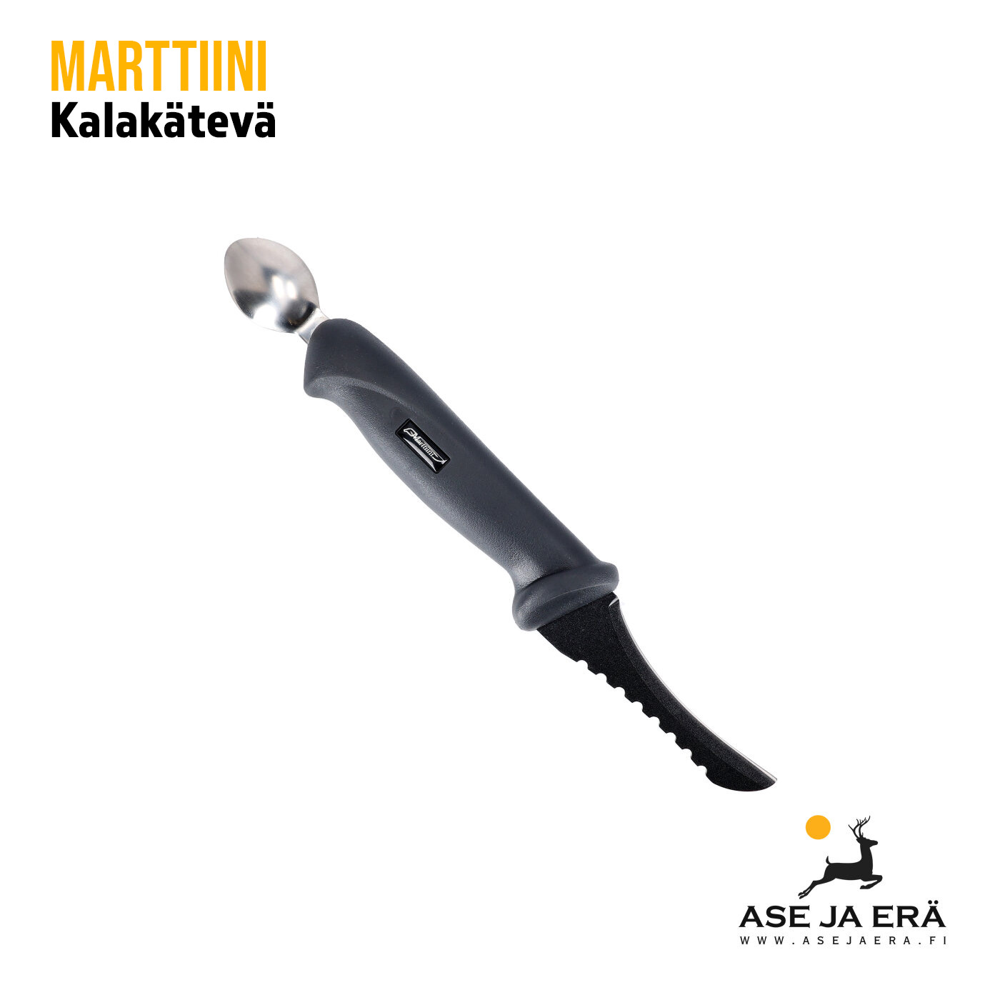Marttiini Kalakätevä kalastajan tarpeisiin luotu näppärä apuväline, jolla putsaus ja perkaus käy sujuvasti. Kalan aukaisu, sisuskalujen poisto ja suomustus onnistuvat kaikki Marttiini Kalakätevän avulla. Pitävä kumikahva ja muovinen teränsuojus tekevät Kalakätevästä helppohoitoisen ja kevyen kuljettaa mukana. Terämateriaali ruostumaton kromiteräs.