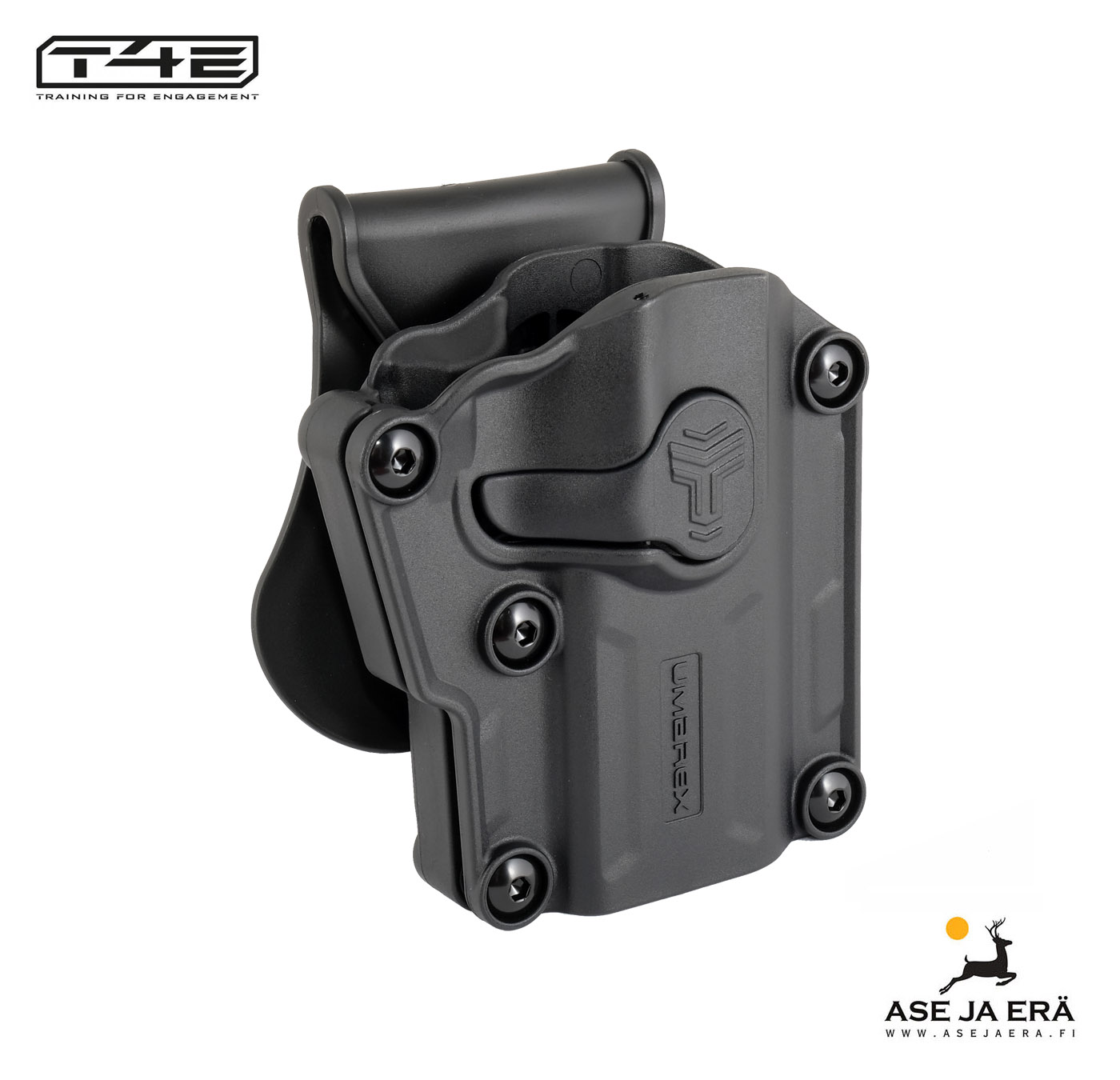 Umarex T4E Multifit Polymer Paddle -pistoolikotelo on monipuolinen kotelo, joka soveltuu monen eri valmistajan pistooleille.
