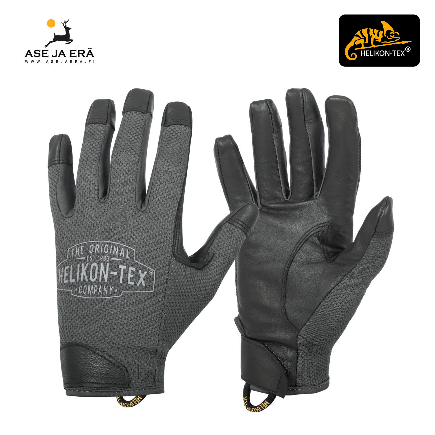 Helikon-Tex Rangeman ampumahanskat on kevyet, erityisesti ammuntaan suunnitellut hanskat, joiden leikkaus ja materiaalit tarjoavat erinomaisen tuntuman aseeseen. Hanskojen sormi- ja kämmenosat on valmistettu aidosta kengurunnahasta, joka suojaa käsiä ja tuntuu miellyttävältä pidemmässäkin käytössä. Hanskojen kämmenselkä on hengittävää ja kestävää nylonkangasta.