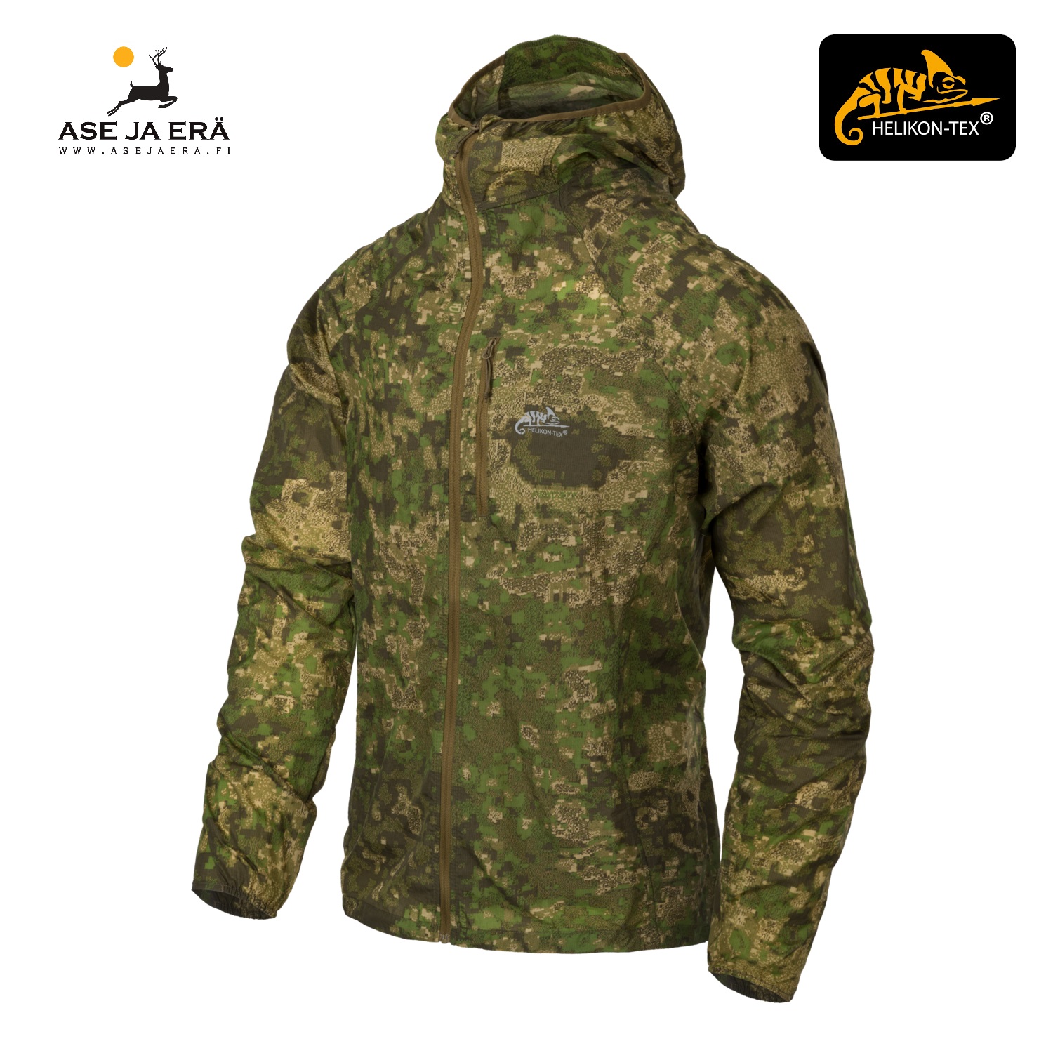 Helikon Tramontane -tuulitakki on saatavana kuudessa eri värissä: Musta, Coyote, Flecktarn, Pencott Wildwood, Tiger Stripe ja US Woodland.