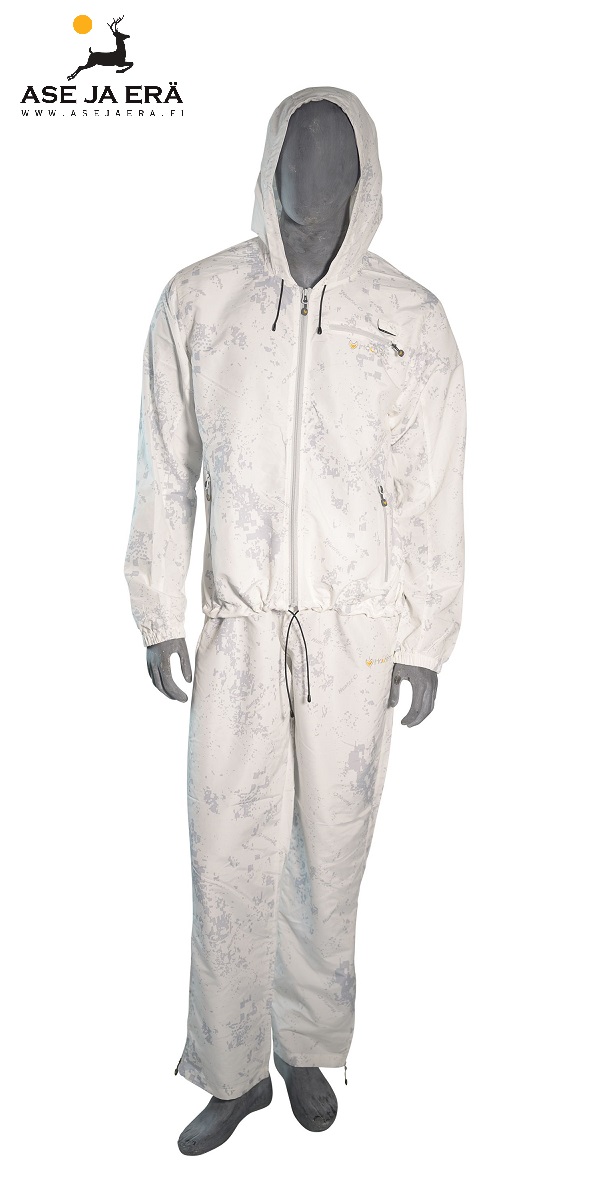 Haunter Driffle lumicamo Lumipuku soveltuu lumisiin ja talvisiin olosuhteisiin. Driffle lumicamosetti koostuu erillisistä housuista ja takista. Housuissa ja takissa on reilu mitoitus, joten ne on helppo pukea tavallisten metsästysvaatteiden päälle.